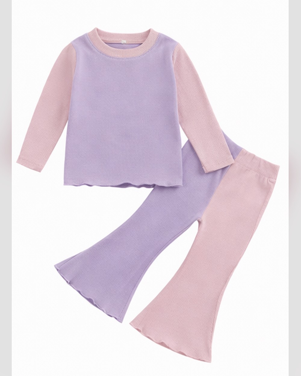 Lavender & Blush Ribbed Baby Top and Flared Pants Set