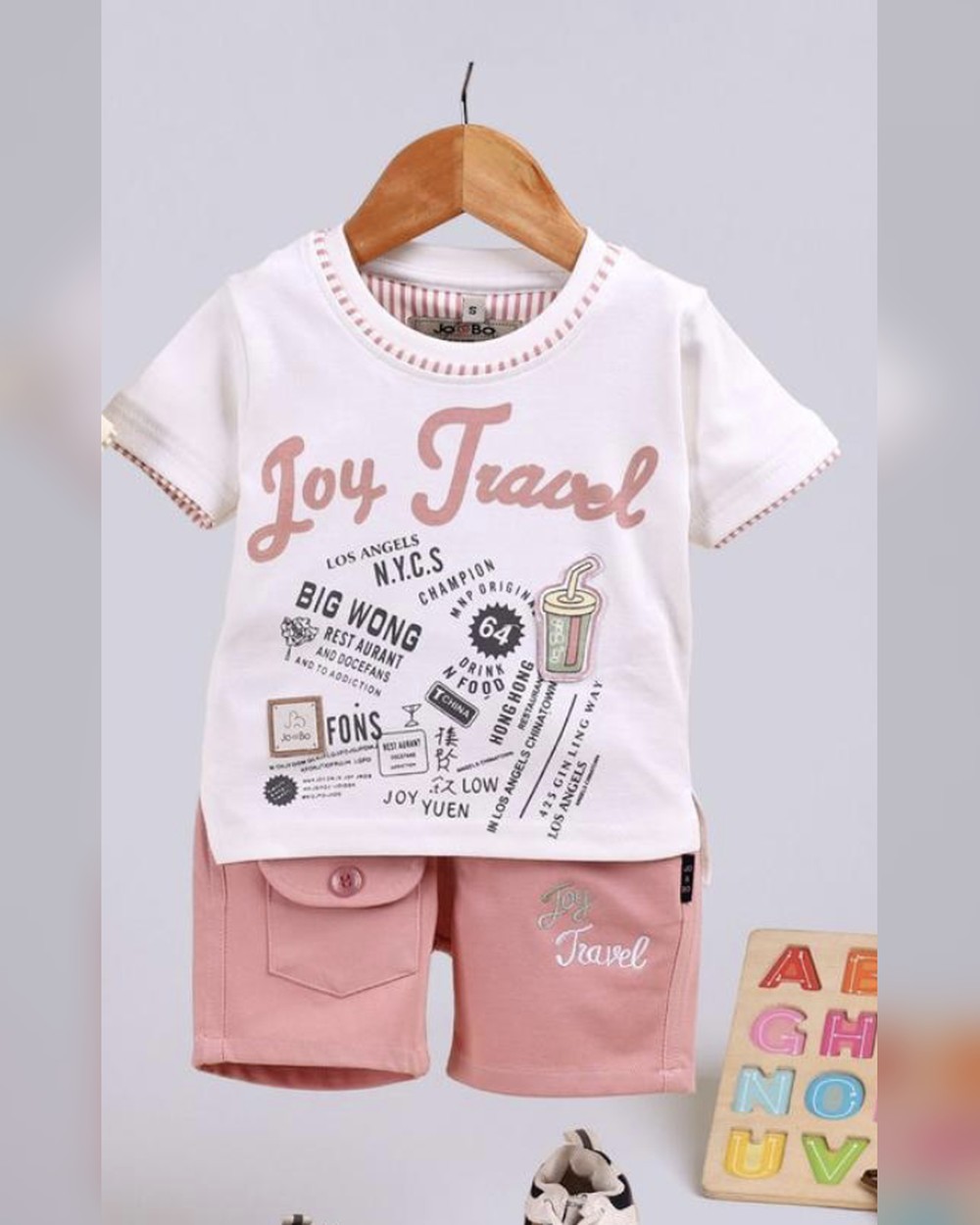 Little epicurean explorer set t-shirt with short 2pcs (Pink)