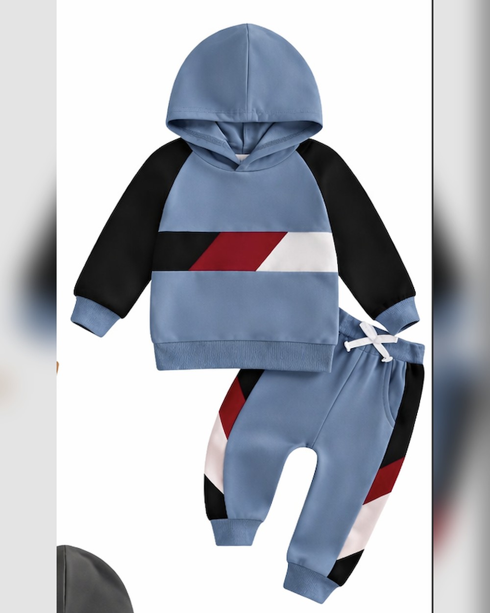 Steel Blue & Black Colorblock Hooded Baby Sweatshirt and Jogger Set