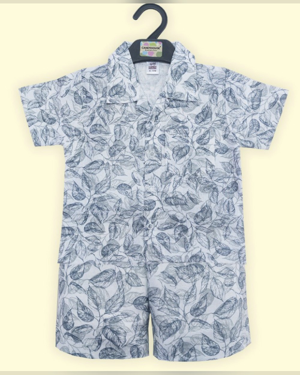 Summer leaves printed comfortable shirt and short (Grey mixed blue)