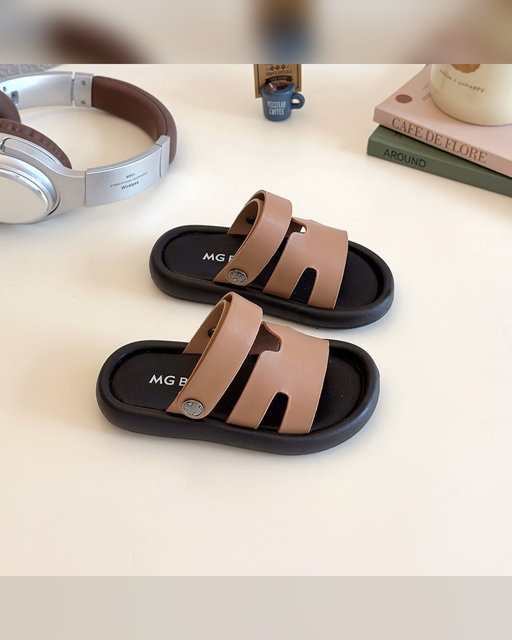 Tan & Black Slip-On Baby Sandals