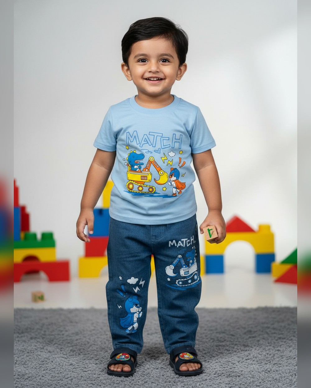 The monster truck denim & t-shirt set / casual wear / comfrot outfit / 2pc (light blue)