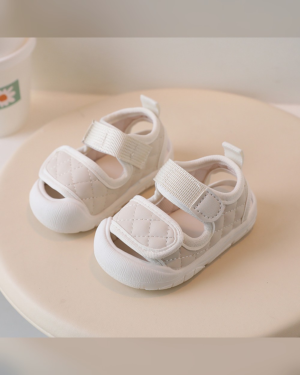 Baige Quilted Baby Sandals with Velcro Strap