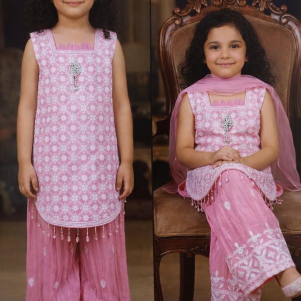 Pastel Pink Bow Tulle Embroidered...