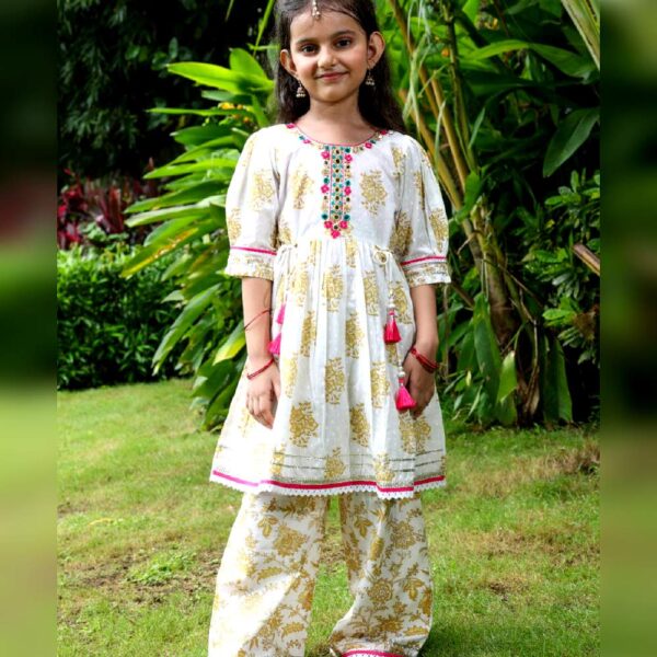 Boys Peach Ethnic Print Kurta,...